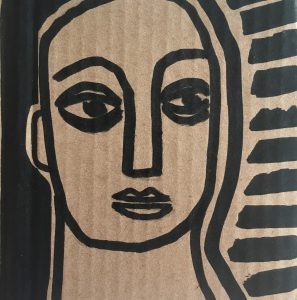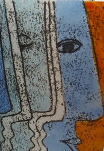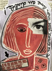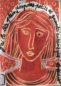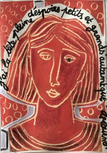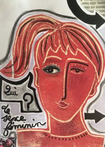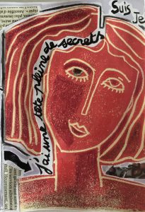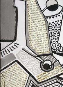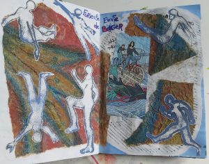 Technique mixte (collage de linogravures, dessin, peinture)
