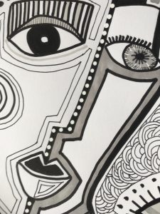 Dessin au feutre, graphisme et collages