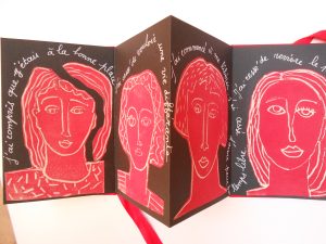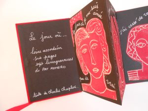 Livre accordéon unique couverture carton et tissu rouge