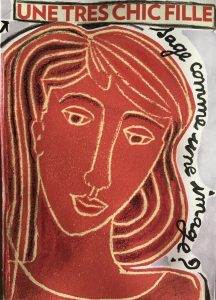 Technique mixte (photos rehaussées de couleur, linogravure, aquarelle, crayons de couleur)